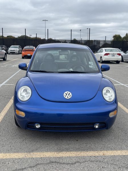 On the opposite side of the lot sits something a little smaller, a little brighter, and a lot more sentimental. Senior Michaela Jordan drives a 2002 Volkswagen Beetle, a hand-me-down from her sister that she lovingly named The Blue Beetle, after the DC superhero.